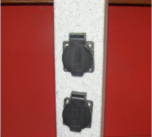 Durch das inliegende Montagematerial , kann man die verbauten Kabel durch den Durchgang gut positionieren ohne das sie verrutschen. Die Zwei untereinander liegenden Steckdosen sind mit federnder, selbstschließender Abdeckung versehen,